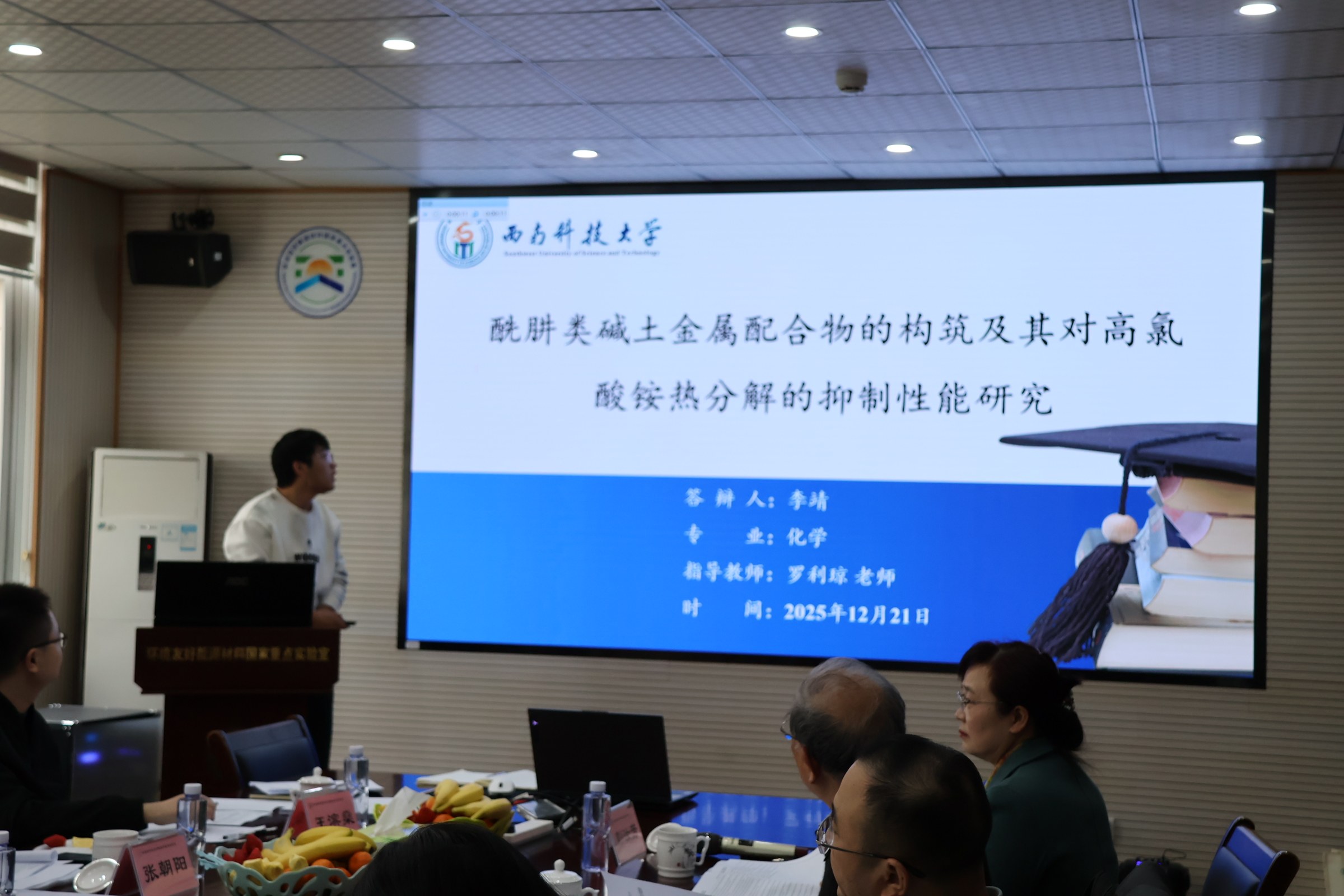 2025年12月21日下午14:00-18:00,我团队2024级硕士研究生开题答辩在环境友好能源材料国家重点实验室Ⅱ区229顺利举行,参加此次答辩会的老师有来自中国工程物理研究院化工材料研究所的张朝阳研究员、孙杰研究员;来自西南科技大学/材料国重的李鸿波教授、彭汝芳教授、金波教授、楚士晋教授、郭志成教授、赵杨讲师、王滨燊特聘副研究员和李洋老师。本次开题答辩有11位同学。